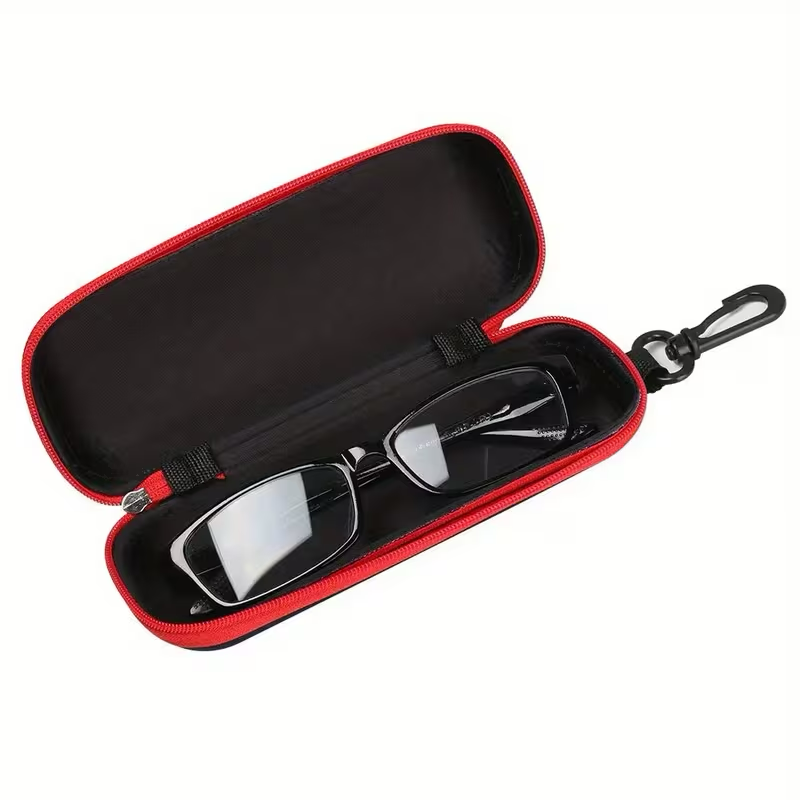The hard-shell construction helps protect glasses from crushing, impact, and accidental pressure inside bags or luggage. A smooth zipper closure ensures secure storage, while the attached hook allows easy carrying or convenient attachment to a backpack, handbag, or belt loop.